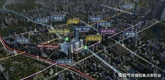 四地铁:地铁7、9号线交汇,无缝接驳红岭北站,同时规划有14号线及17号线;