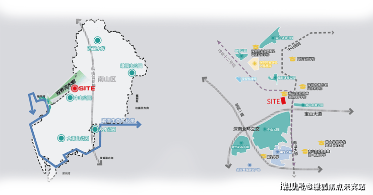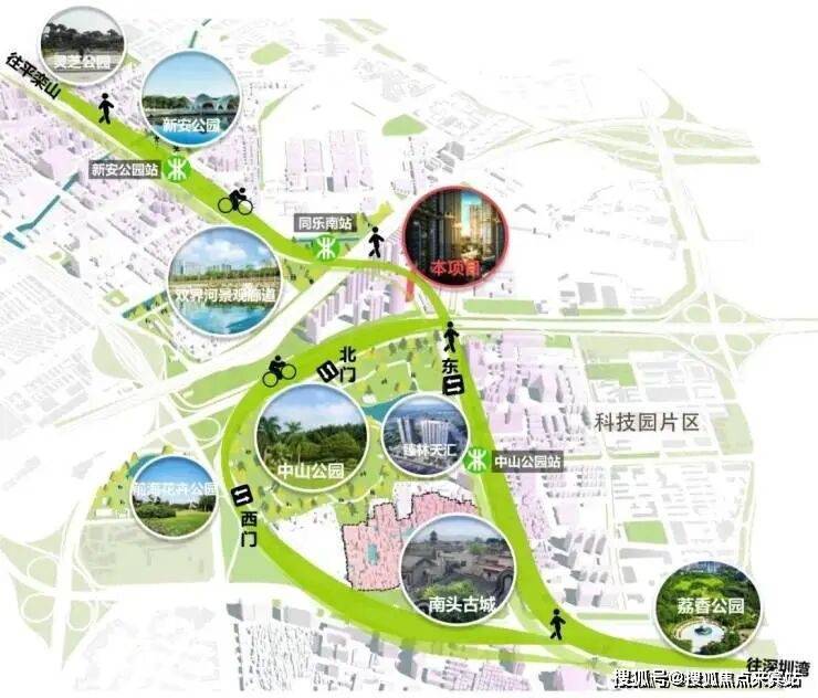 众所周知,南山科技园是深圳的“创新心脏”与“经济脊梁”;南头古城是深圳当之无愧的文化瑰宝与历史明珠;中山公园是南山区的“绿色文化客厅”;北环大道是深圳东西向主要城市干道,也是深圳的产业发展交通轴。