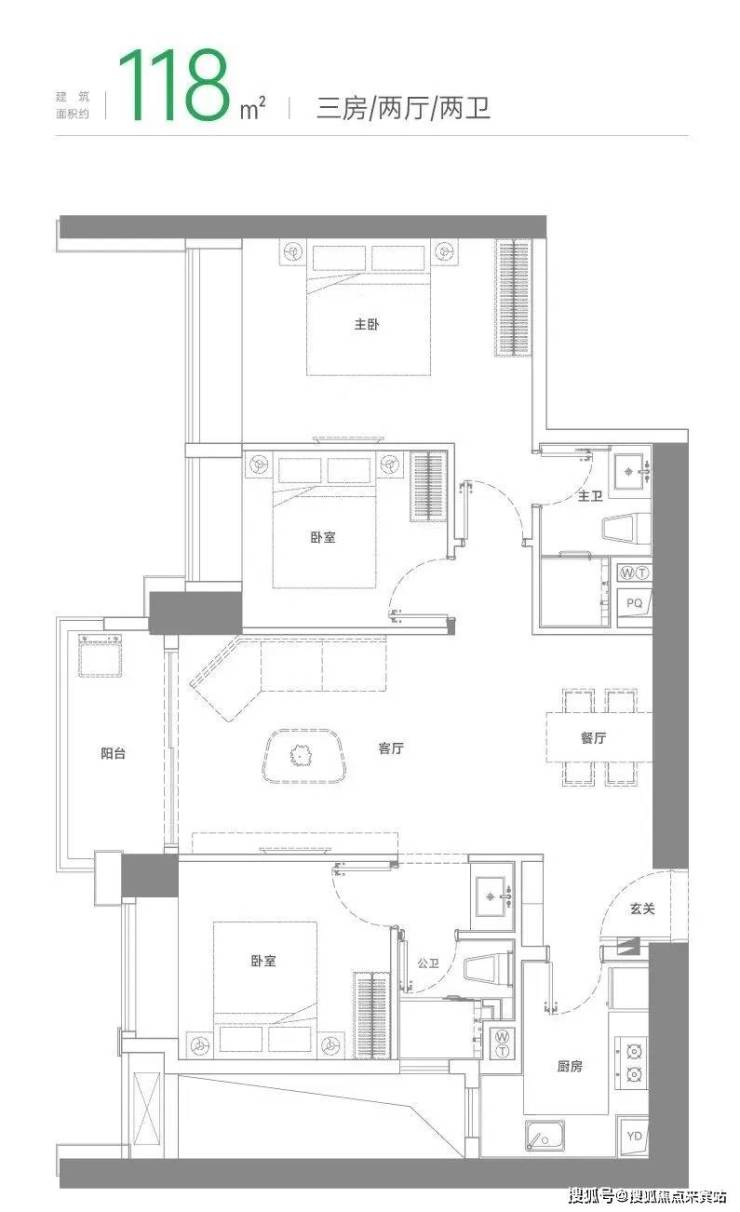 本户型不多,只有99套,总体和118平格局类似,每个区域稍微大一点点,生活阳台拓进厨房会让厨房更大一点。