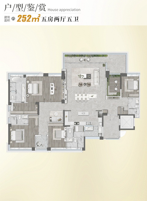 涵盖约121㎡四房两厅两卫、约136㎡四房两厅两卫、约168㎡四房两厅三卫、约252㎡五房两厅五卫四个户型,覆盖刚需改善、高端改善等不同购房群体的需求。
