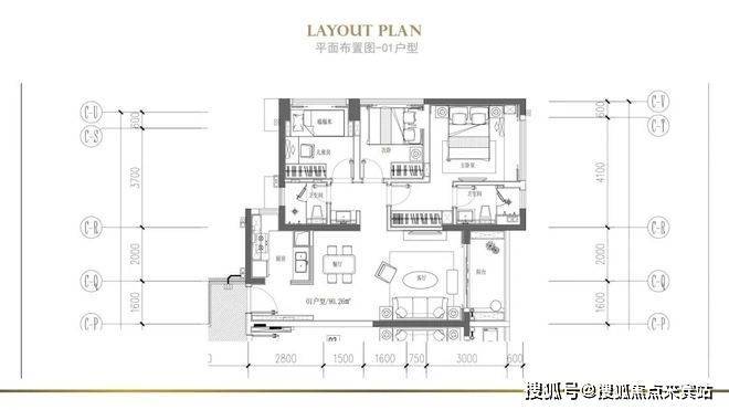 建面约90㎡(或89㎡)——01户型(东向)