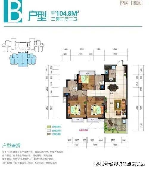 B户型(s1)三室两厅两卫-3室2厅2卫-108.4㎡