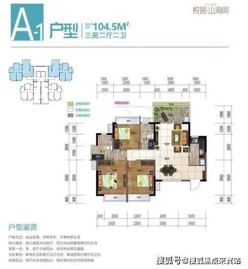 A-1户型-3室2厅2卫-104.5㎡