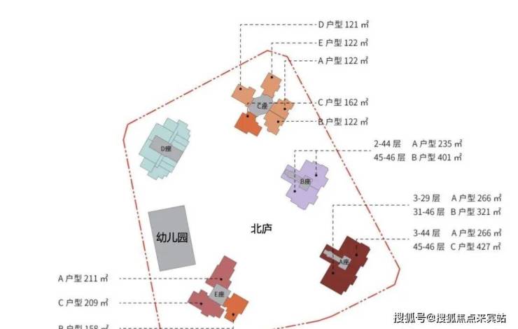 住宅产品:建面约122㎡、209—266㎡、321㎡、427㎡