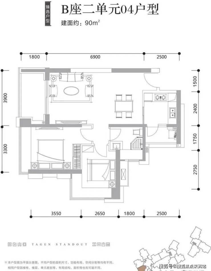 3、3个户型都格局方正、动静分区合理,客厅、房间尺度宽绰,易于精装设计和软装布置。