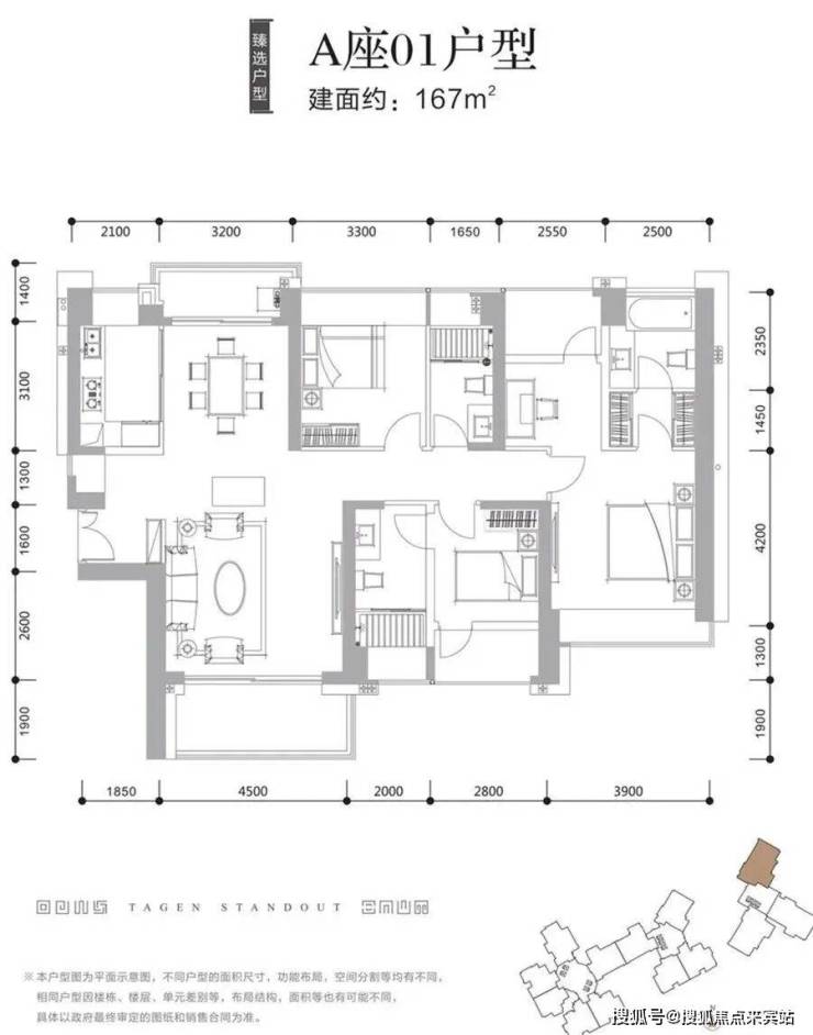1栋A座:148米,46层,共85户,朝南为主,三梯两户