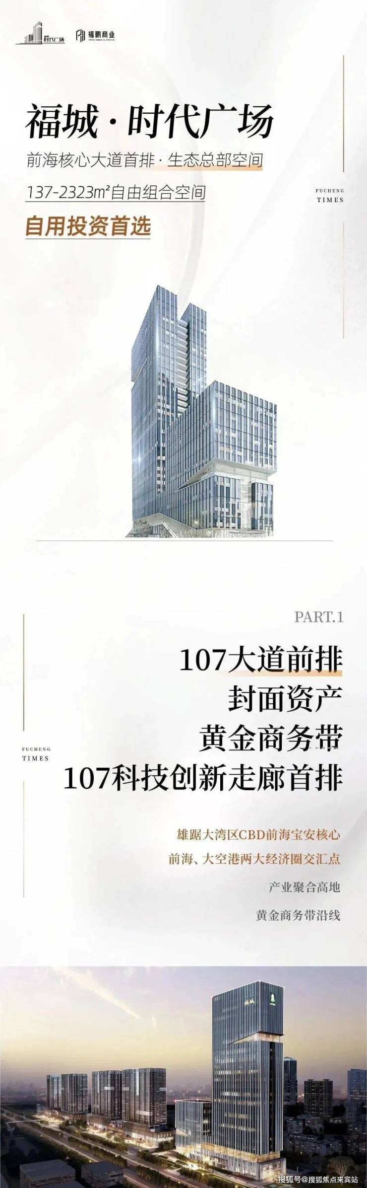 •地处南头关口,整体项目以一公里阵地线屹立为城,以180米封面天际线引领107时尚商务走廊前排,
