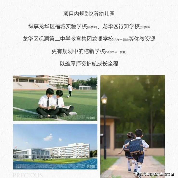 项目规划有2所幼儿园,根据2025年龙华区教育局的最新学区划分,小学学区划分在龙华行知学校小学部(距离约1.4公里),福城实验学校小学部(距离约1.7公里),龙澜学校小学部(距离约1.6公里),初中学区划分在龙澜学校初中部。