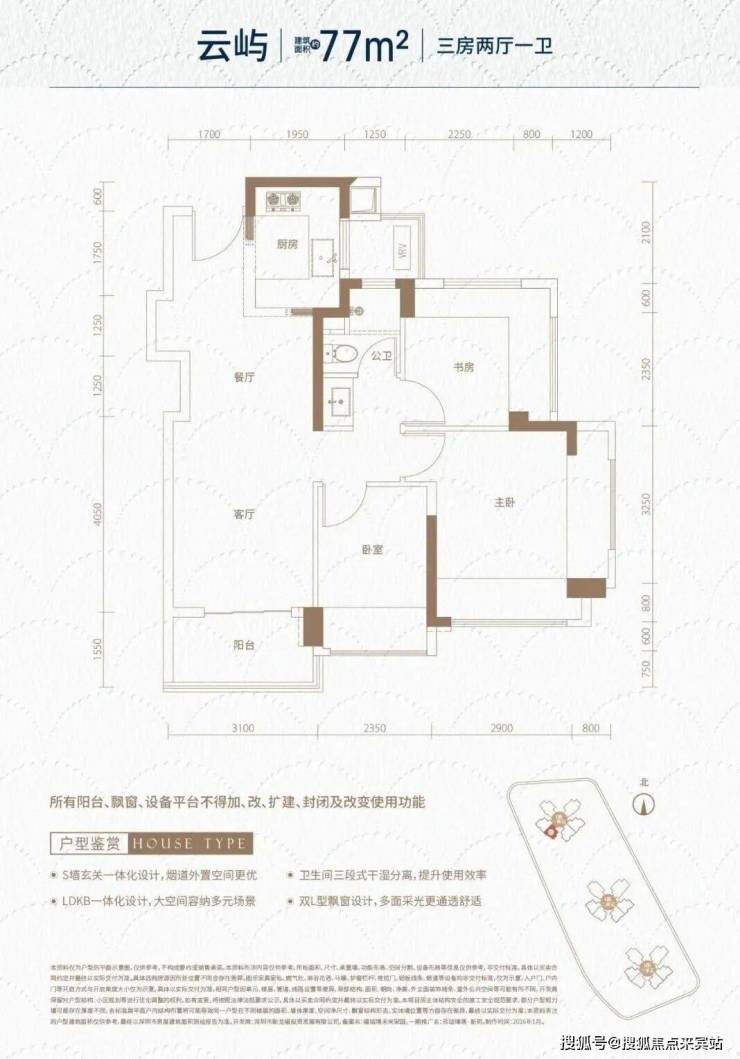 77㎡的3房2厅1卫,折后总价239-262万/套,单价3.1-3.38万/㎡。