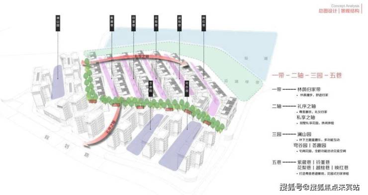 *项目园林景观五进归家 · 一带两轴 · 三园五巷,呈献山林雅居五重境。