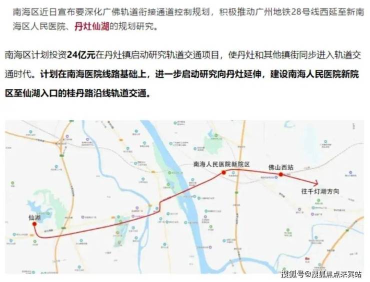 为拓展广州1小时交通半径,打造广佛超级城市,南海区近日宣布将深化广佛轨道衔接通道控制规划,积极推动广州地铁28号线西延至南海人民医院、丹灶仙湖的规划研究。
