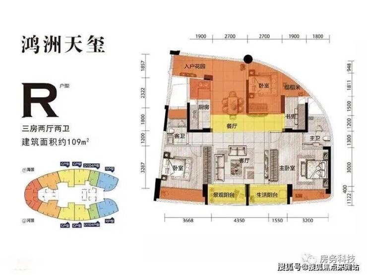 R户型 三房两厅两卫 建筑面积109㎡