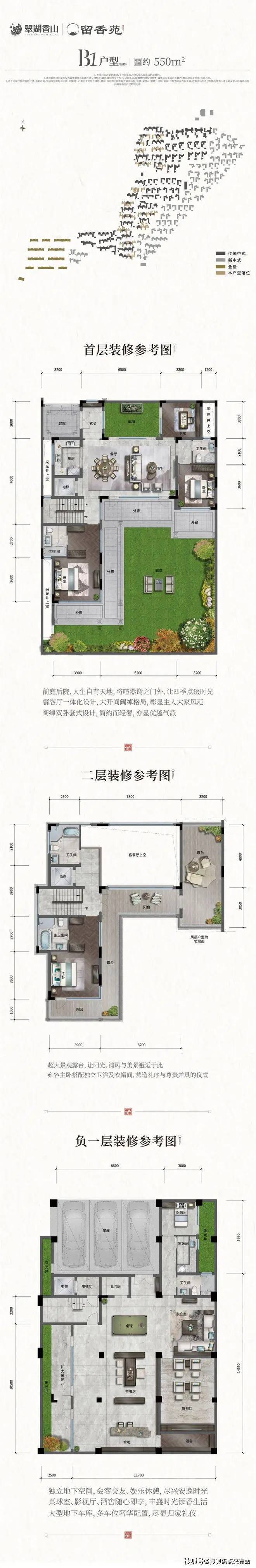性价比极高,北入口,入户庭院设计,彰显豪门气派,入户客厅6米6挑空,主花园合计137平,方正实用,合院少有的三步富贵入门,地下室方正柱子少