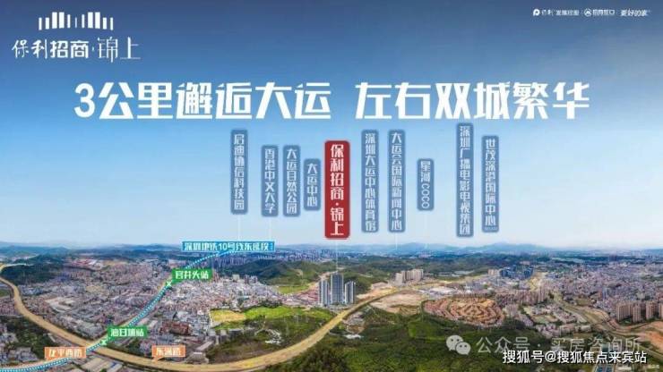 保利招商锦上位于天安数码城旁,深入深圳腹地,三面环深。5公里范围可直接享受龙岗大运、深圳平湖以及凤岗中心三大城市中心区所有配套。