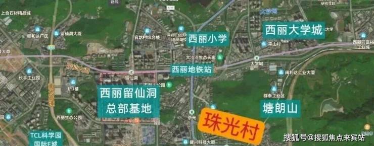 项目西侧为西丽留仙洞总部基地,东北侧为大学城,东侧为塘朗山,西南侧是西丽高铁站。