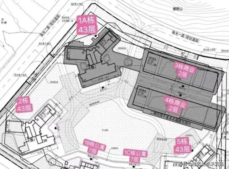 项目分两期实施:一期A项目(珠光和山悦花园)由花伴里开发,总建面约19.83万㎡;一期B项目由京基开发,总建面约25.5万㎡。