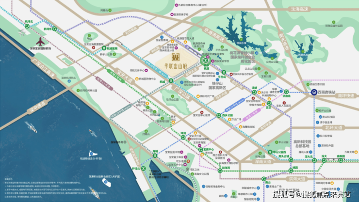 华联峦山府具体位于广深公路、航城大道与前进二路之间,同时是地铁12号线西乡桃源站、20号线二期(建设中)航城站及28号线(规划中)的三轨交汇物业,并坐享深圳空港经济圈的交通红利。