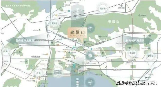 中心区域:深圳山海城中轴,左手香蜜湖、右手华侨城,六大总部基地环伺