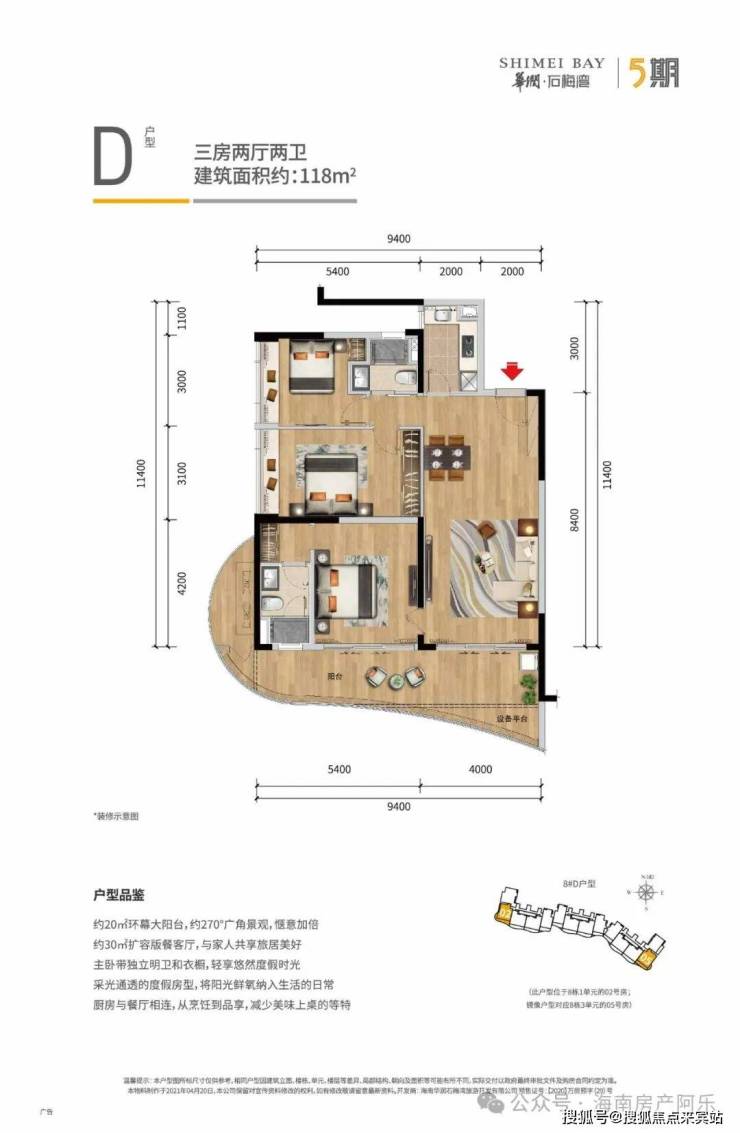 主推户型:104㎡/105㎡/108㎡/111㎡/118㎡三房两厅 全家庭度假房型