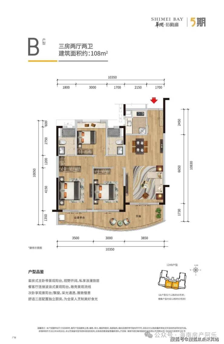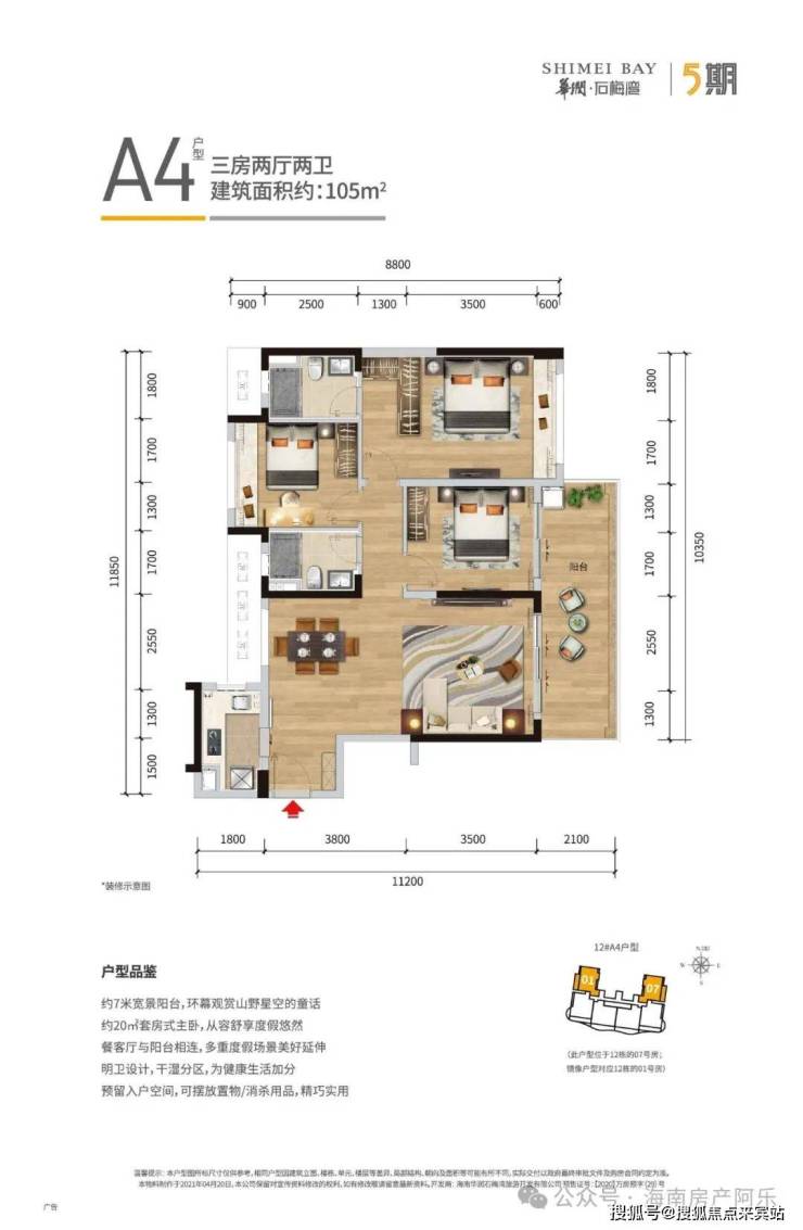 主推户型:105㎡/108㎡/115㎡三房两厅两卫 全家庭度假房型