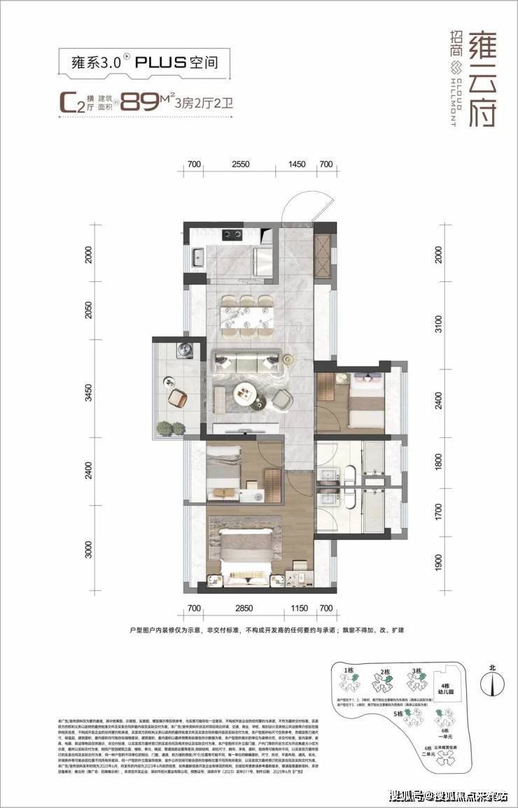 【产品面积】建筑面积约 66㎡ 2房1卫 / 79㎡ 3房1卫/ 89㎡ 3房2卫 / 109㎡ 4房2卫【物业公司】招商积余物业