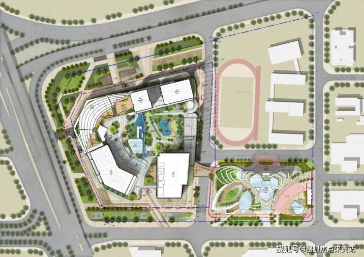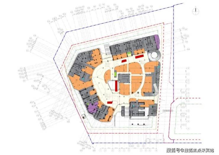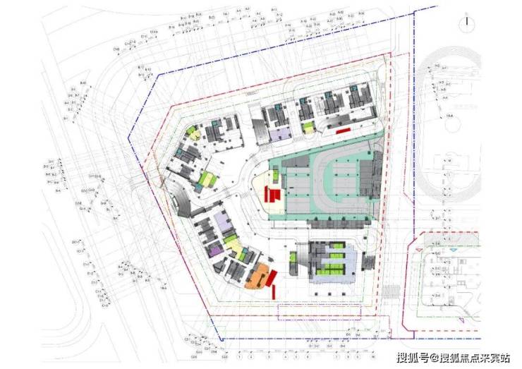 设计布局综合考量地块环境及周边交通网络,将出入口布置于东侧规划路,围绕公交站构建内部环形车行流线,服务各功能业态。公寓塔楼位于北侧,尽享银湖山景;办公塔楼位于毗邻地铁站口、商业价值较高的南侧,形成商业门廊入口;在充分利用景观资源的同时,最大限度实现区域内的交叉自然通风。