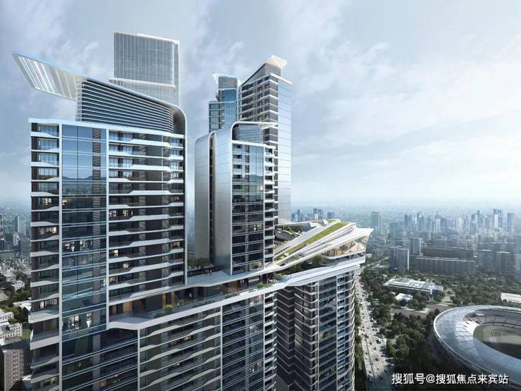 服务式公寓塔楼的弧形阳台立面以云朵为设计灵感,简约的轮廓搭配银白色铝饰面,突显出典雅的几何之美。