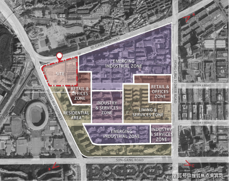 从改革开放后的第一批大型工业区,到后工业时代发展转型出现的空置工厂和旧式住宅,位于深圳福田区和罗湖区之间的八卦岭,见证了深圳城市发展的风雨历程,作为未来福田的商业发展重点,这里亟需一场更新改造。Aedas受业主委托,在这里打造了一座全新的商务公寓综合体,以鹏城之巅的独特轮廓,塑造城市新名片。