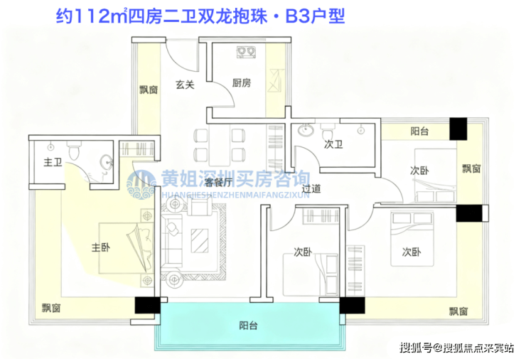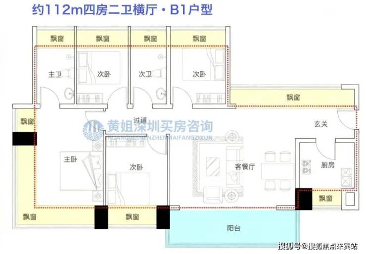 首推主力户型:112-122㎡纯四房住宅
