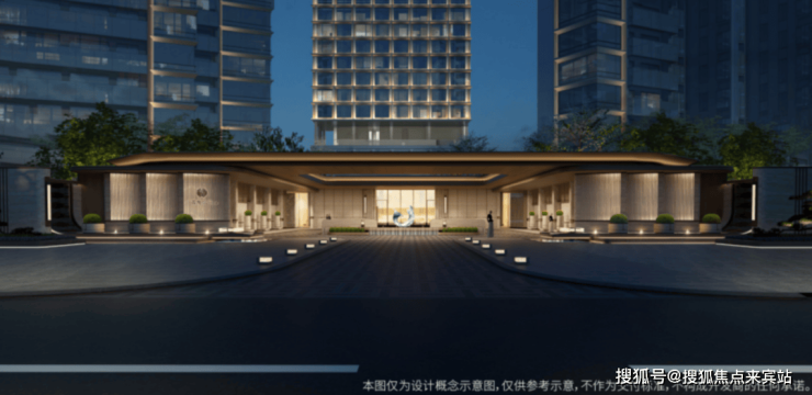 立面设计以“温暖港湾”为灵感,寓意航海远行后满载归来,让人们在城市之心就能抵达温暖港湾,尽享轻奢栖居。从广深沿江高速、深中通道的视角看,天际线呈前中后三个层次高低起伏,形成流动天际线,焕启一眼惊艳的天际风尚。