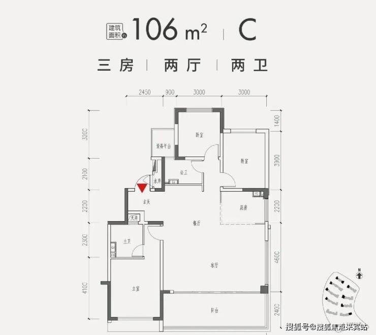 2、106平米三房两卫,C户型
