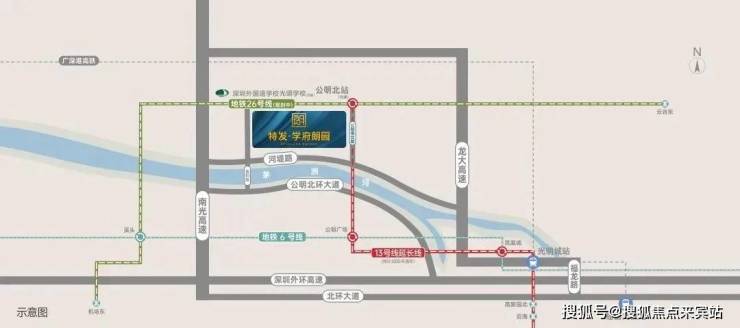 项目距13号线二期(北延)公明北站直线距离约200米,4站达公明广场,可换乘6号线通达宝安/光明/龙华/罗湖/福田双地铁:①13号线及其南、北延长线(建设中,预计2025年开通)起于东角头站,终于公明北站,纵贯光明、宝安、南山,线路开通后约30分钟可抵达南山核心区,约45分钟可达深圳湾口岸,以高新技术人才为主要客流,被称为高新技术人才专线②26号线(规划中)起于机场东站,终于公明北站,是连接光明、深圳西部中心及航城等外围组团中心的轨道线路,可快速通达粤港澳大湾区城市群及全球国际都市群,被称为国际机场专线,双免费高速:项目周边还享有南光高速和龙大高速两条双免费高速的交通配套,快速通达全城项目附近的茅洲河是深圳第一大河,被称为深圳的“母亲河”,政府投资超300亿来打造“茅洲河景观带”,沿岸已建成6座生态湿地公园、10座雨水花园、约45.6公里漫步道,以及茅洲河展示馆、南光绿境公园、左岸科技公园等景点。