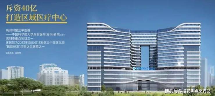 在项目茅洲河对岸,就是“中国科学院大学深圳医院(光明)新院”,政府投资 40 亿打造的三甲医院,未来将打造成区域医疗中心,是深圳市重点项目之一,预计 2025 年建成并投入使用。项目用地面积约 5 万平方米,总建筑面积为33.7 万平方米,可提供床位 1500 个,将有效缓解群众看病难的问题。