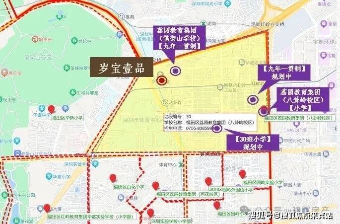 5、教育氛围——荔园教育集团(八卦岭校区)已于2022年9月开学,是本项目的临近学校,且项目西侧由岁宝代建的荔园教育集团(笔架山学校)计划2024年竣工,项目北侧为深圳中学,整个片区教育氛围浓厚。本项目临近之学校的申请学位及落户条件以政府(包括但不限于教育主管部门)颁布的政策及学校规定为准,开发商不做任何承诺。