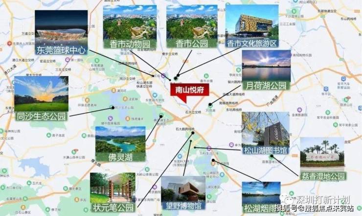 生态文体:6大公园:香市公园、佛灵湖、同沙生态公园、月荷湖、松湖烟雨、状元笔公园;2大国家4A旅游区:香市文化旅游区(中国沉香文化博物馆)、香市动物园;3大文体项目:东莞唯一CBA篮球馆、松山湖图书馆、望野博物馆等众多人文配套;