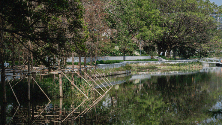 三面环山,片区及周边拥有丰富的山水资源,是天河东部重要的绿色开敞空间,水系包括太阳湖和月亮湖等2个人工湖,周边被钟岭、横岭、大山等自然山体环绕