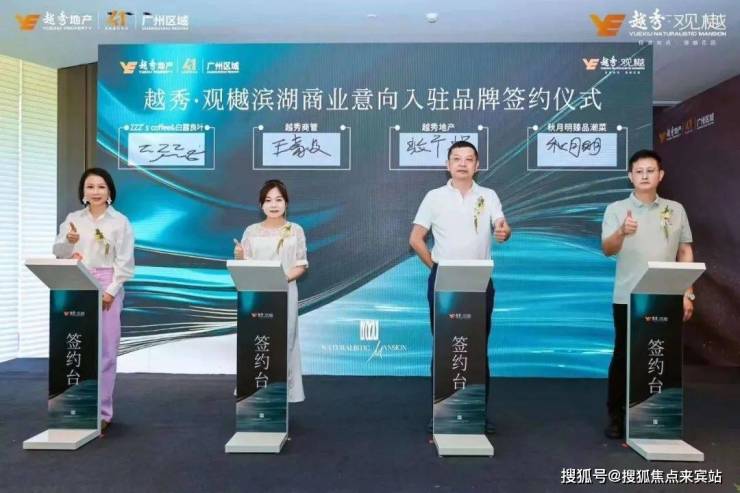 观樾的湖畔商业通过张弛有度的序列空间,让湖与商业的深度链接。不管你走进哪家店,感受的都是扑面而来的湖景,随便找把椅子,就能直面湖泊。7月份举办意向入驻商家签约仪式,选择的都是有调性的商家品牌,也提前明确了商业的标准线。像广粤天地同款的高端精品超市“每一角落”,潮菜品牌秋月明臻品菜、原创咖啡ZZZ'S COFFEE等,匹配业主的消费习惯。