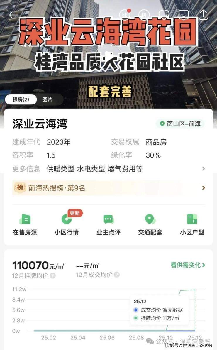 二手房竞品有:深业云海湾、前海时代CEO公馆、天健悦桂湾,挂牌价格在10.5-12.5万/㎡之间。