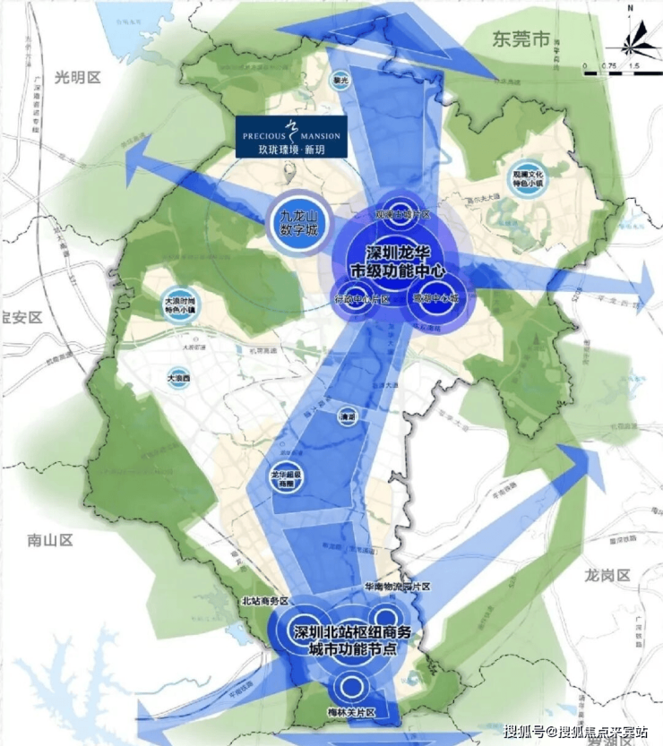 项目位于龙华九龙山数字城,地处龙澜智造走廊与梅观创新走廊交汇点,定位为粤港澳大湾区智造中心,与北站商务中心共同构成龙华南北"双中心"格局。