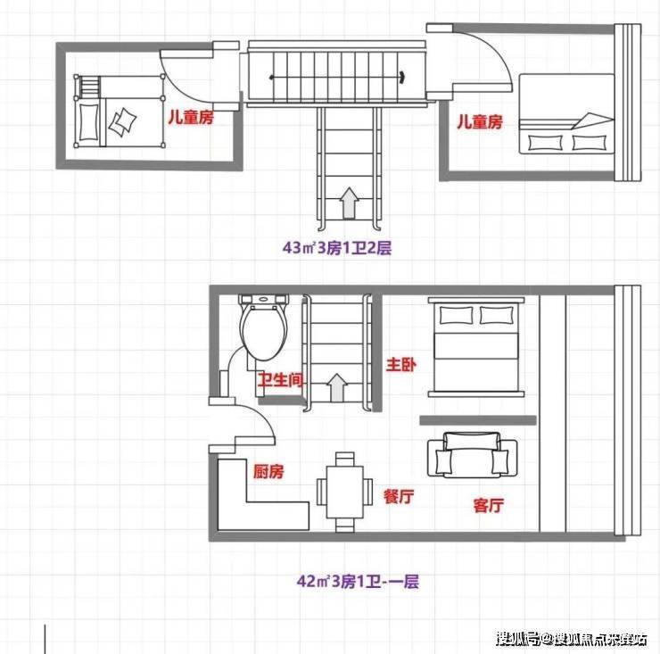 42㎡3房1卫户型图