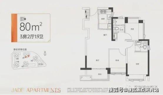 约80㎡三房2卫:创新LDKB户型设计,小户型三房两卫,三代同堂、两娃家庭上车首选