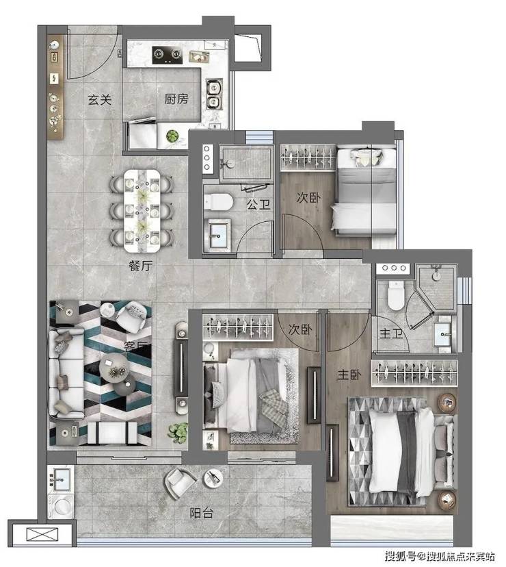 ②6.85米阔景阳台,南向三面宽,双面宽阳台。