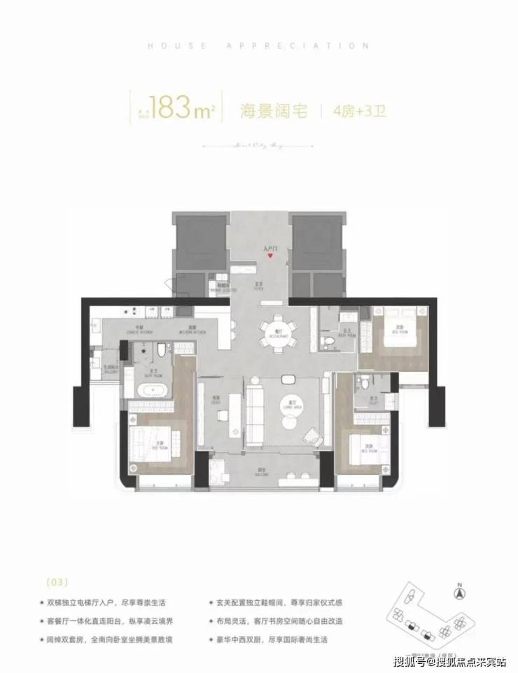 243㎡4房精装海景公寓,备案总价2139-2944万(层高3.5米)