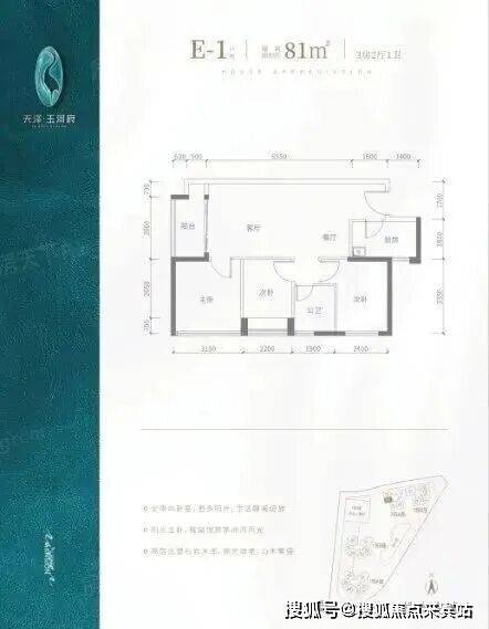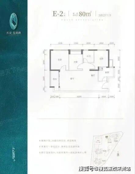 2、户型不错,80㎡做三房,得房率高,朝向采光好;