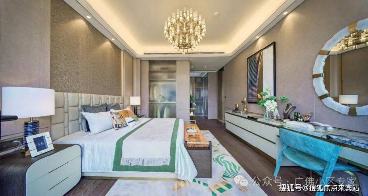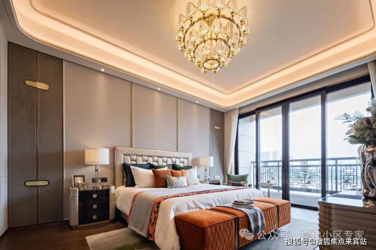 🌙 主卧承接青绿山水的主调,扪皮主材点缀金属线,现代与古典相融;