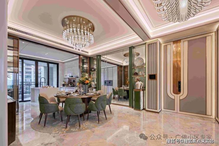 ✨过厅背景墙采用青绿哑光烤漆圆弧造型搭配绿翡翠岩板;