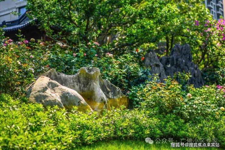 数十块造型奇特的景石营造延绵山脉的效果,配合全冠移植的超大乔木,姿态各异的花卉与植被,浓缩成“千里江山尽在此园”的意境