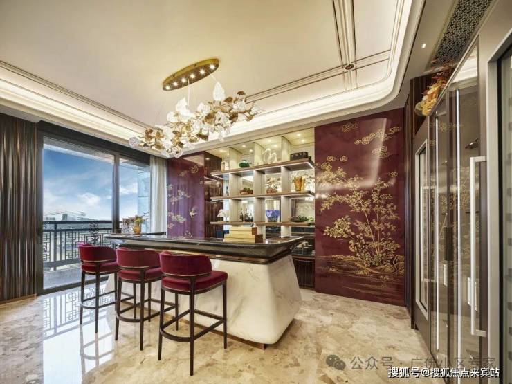 🌟维纳斯白玉质奢石吧台,配备全欧洲进口酒柜;