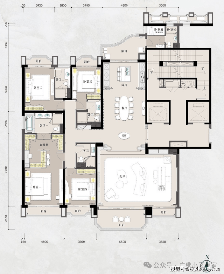 🌟客厅、餐厅、水吧、休闲厅4个不同的生活场景,加起来超过125㎡;