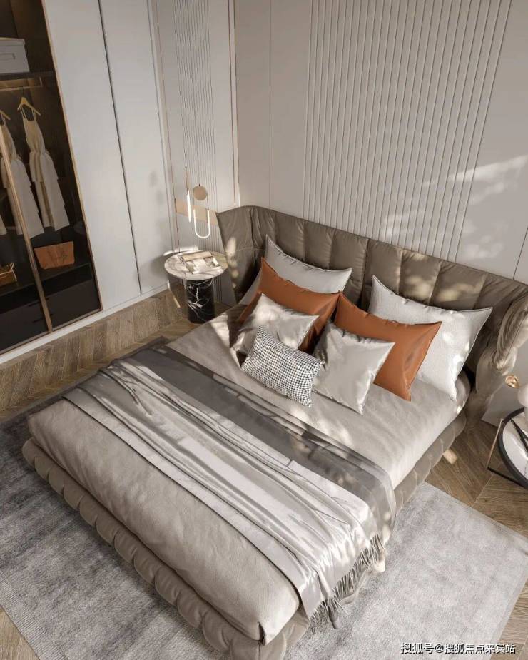 卧室是否合理设计影响到业主整体生活质量,以空间通透设计为主,无论清晨还是日暮,都充满阳光,原木色的地板、硬包的大床打造出舒适的家。